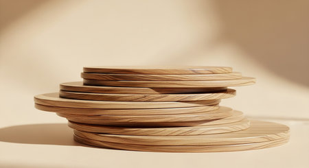 Stack of Minimalist Wooden Coasters on Neutral Background