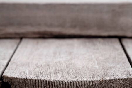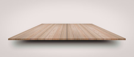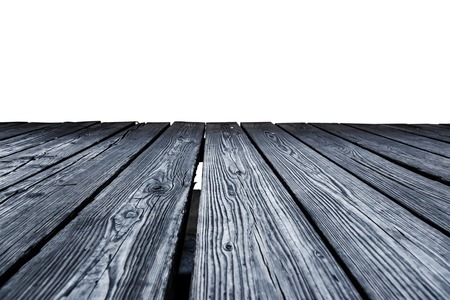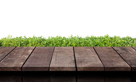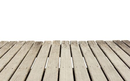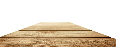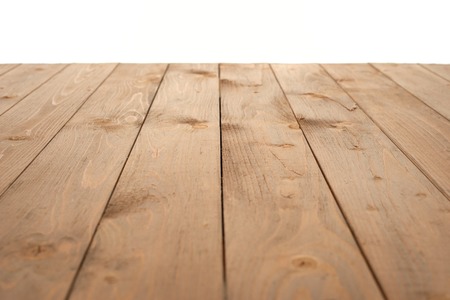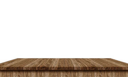 Wooden board empty table in front of a white background. Brown Wood Perspective - Can be used to showcase or assemble your products. Pick up to demonstrate the product. The texture of the old wooden floor from the boards.