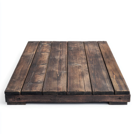 This rustic wooden platform features a dark finish, providing a versatile backdrop for photography or displays. Its simple elegance enhances any interior environment.