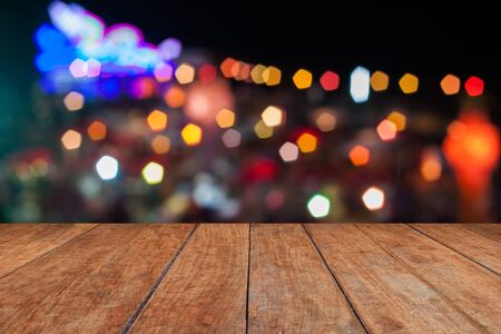 Perspective top wooden with abstract blurred lights in Loy Krathong festival