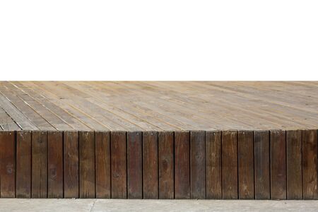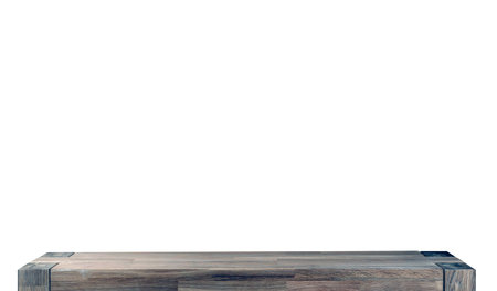 Wooden table top surface isolated over white background. Solid wood furniture close view 3D illustration. Empty table top cooking presentation template