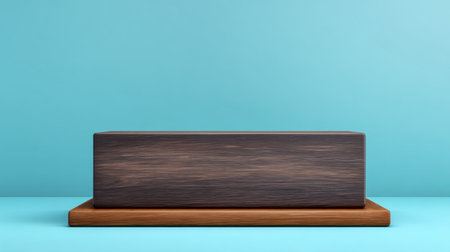 This image features a sleek wooden display block against a calming blue background, ideal for showcasing products or enhancing minimalist design concepts in visual projects.