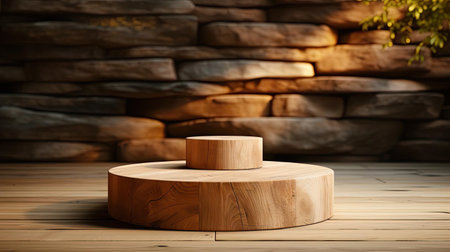 AI Generated. wood podium for display product Background for cosmetic product branding, identity and packaging inspiration