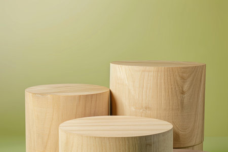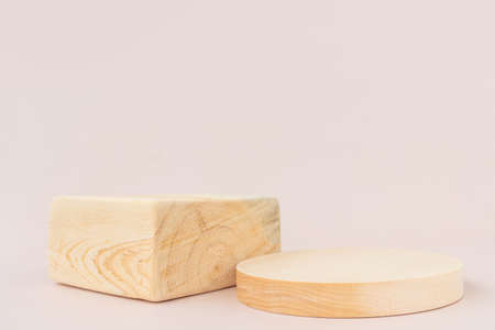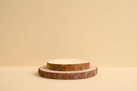 Natural wooden podiums, an empty showcase for demonstration or presentation of cosmetic products
