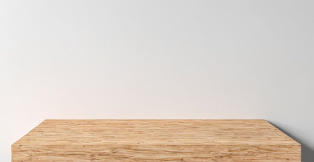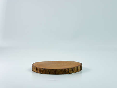 Wooden product display. Advertising pedestal made of wood. Platform showcase on clean background. 3D rendering.