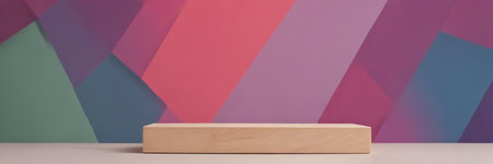 A simple wooden podium stands against a wall, with a diagonal shadow cast by sunlight. Clear details and vibrant colors enhance visual appeal.