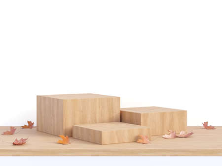 Empty wooden podium with autunm concept isolated on white background 3d render illustration