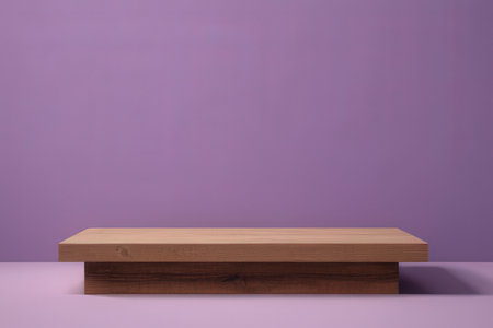 Wooden podium display scene stage showcase front view with copy space on purple background