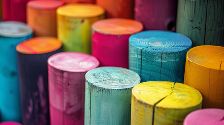 Close-up of colorful painted wooden logs, creating a vibrant and artistic arrangement.