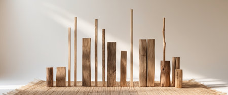 This image features a collection of stacked wooden blocks, showcasing natural textures and warm tones. A minimalist background enhances the serene and calming feel.