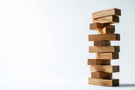 Stacked wooden blocks on a clean background, symbolizing stability, balance, and strategy in design and play, suitable for educational or creative purposes