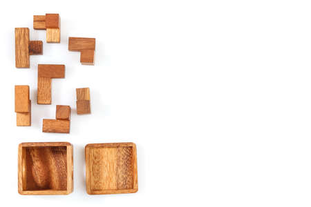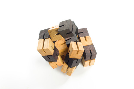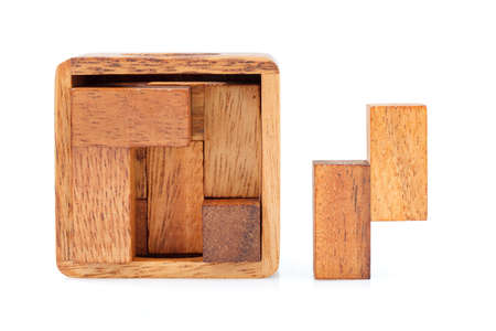 Wooden puzzle isolated on a white background.