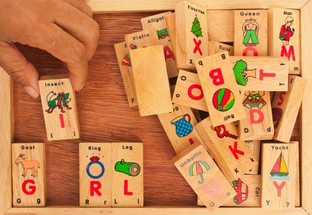Cropped of kid playing with educational game, collacting letters