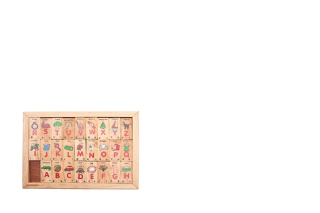 wording A-Z in wood box with one blank