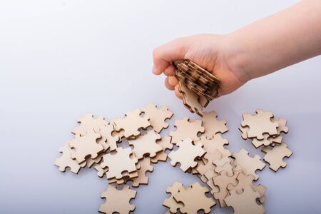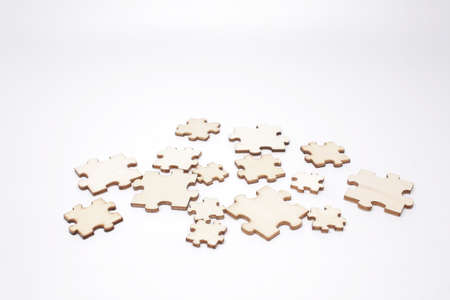 Top view of Blank wooden jigsaw puzzle pattern,Business concept