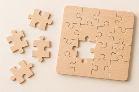 incomplete puzzle pieces on brown wooden table