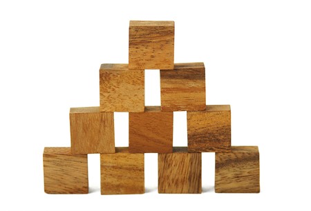 wooden square figures in pyramid isolated
