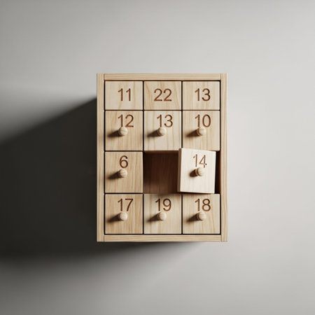 A close-up shot of wooden cubes showing '' with the final cube about to be turned, signifying the start of .
