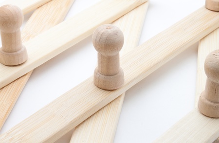 Wooden clothespins on a white background. View from above. Place for text or advertising