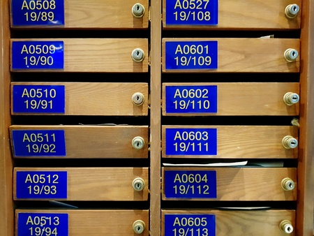 Broken wooden vintage cabinet with missing drawers. Library card or file catalog. Retro database concept.
