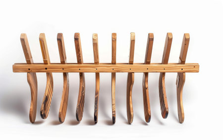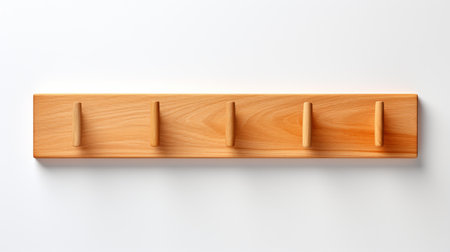 Wooden Wall-Mounted Coat Rack with Minimalist Design on white background