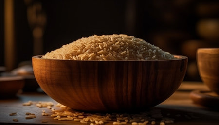 Organic basmati rice, a healthy wholegrain food staple for vegetarians generated by artificial intelligence