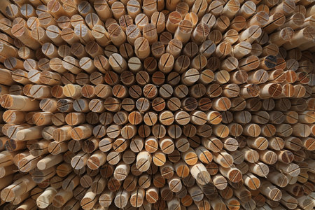wall of stacked light wooden dowels. Generative AI