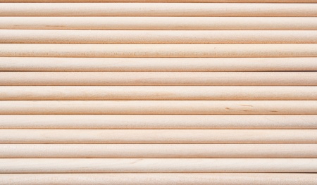 Textured background of round wooden bars. Smooth wooden rods of different diameters for texture. A wall of timber cylinder bars without bark