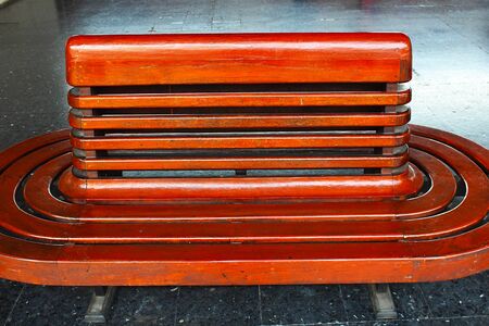 An ellipse wooden bench at Bangkok railway station, Thailand