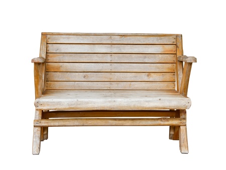 Wooden bench isolated by hand made on white background, clipping path