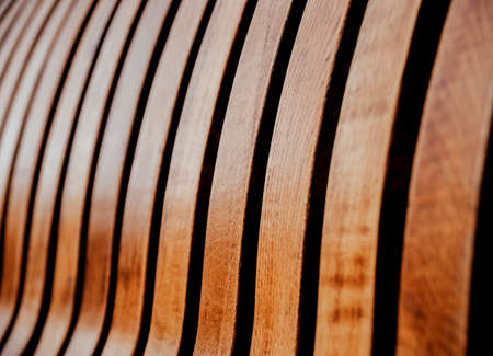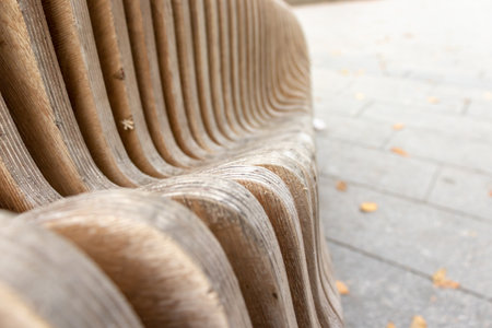 Abstract curved wooden plywood background, natural woodwork construction in park