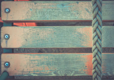 Close up of wooden colored swings in playground, Eio de la Plata, Uruguay 2015.