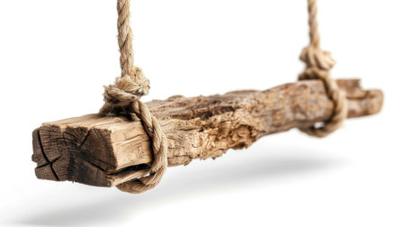 Time-worn rope swings with charming textures, rustic nostalgic look isolated on white