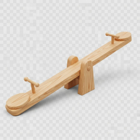 A 3D illustration of a seesaw with different colored weights on either side, set against a simple blue background.