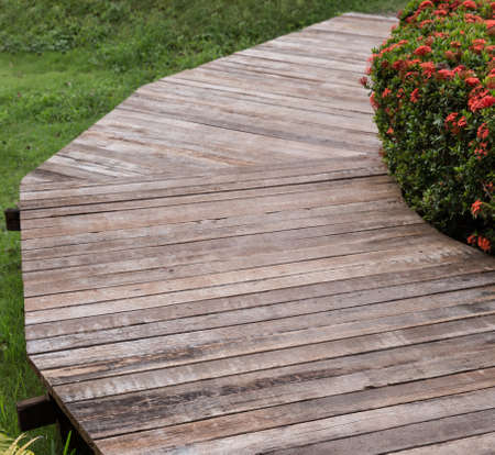 colored road made of boards for pedestrian traffic, stylized in the old days