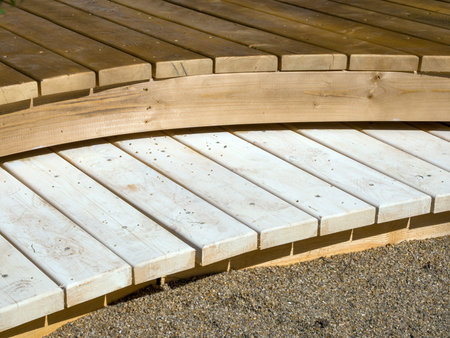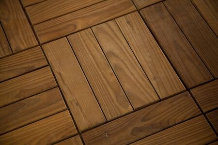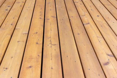 Close up abstract texture view of new cedar wood deck flooring, with copy space