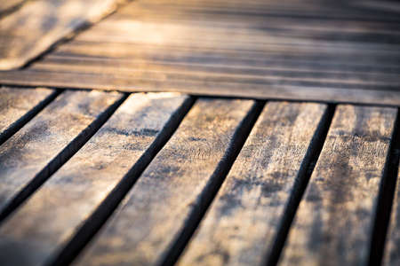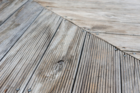 Wood planks marine outside flooring from tick texture background. Wooden pattern of antique ribbed wooden planks for construction deck or indoor floor.