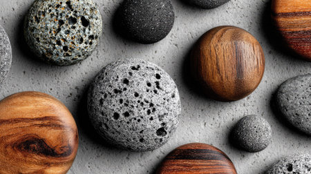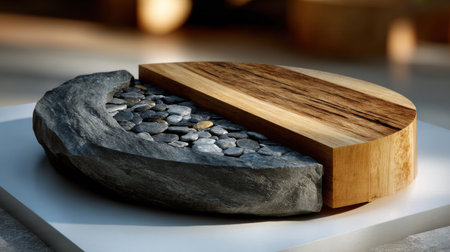 A detailed composition showcasing the beauty of wood and stone, illuminated by natural light, offering inspiration for rustic interior design and decor concepts.