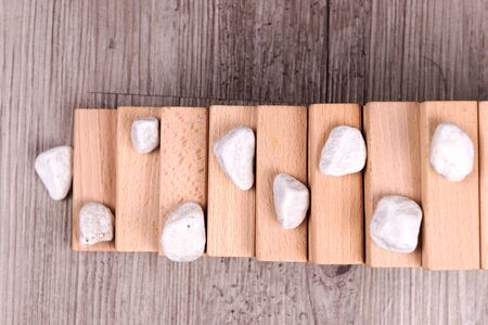 Stones with shadow on wooden background