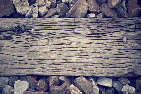 old wooden sleeper on railway track