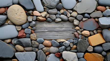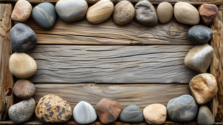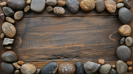 Frame made of stones with a background of wood. AI generative.