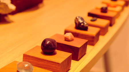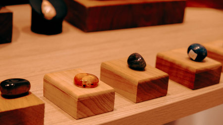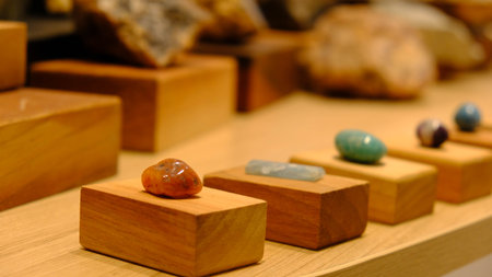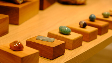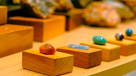 AI Generated. Colorful Natural Stones Arranged on a Workshop Table Background