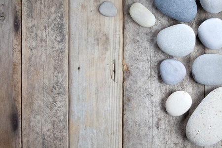 Pebble on a wooden table shot in studio