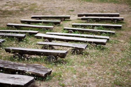 New wooden benches in the open-air amphitheater