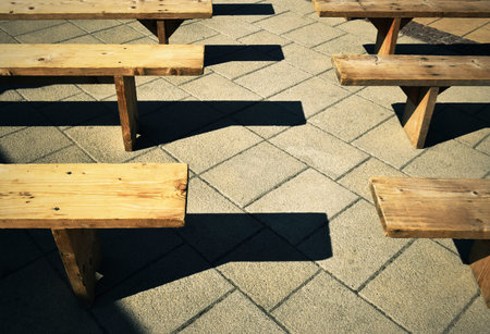 background retro wooden benches on the pavement