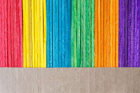 Rainbow colorful wooden sticks. Abstract background.