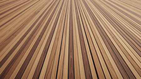 Radiating showing alternating light and dark wood planks arranged in a radiating pattern on a wooden deck surface...