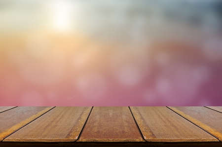 Blurred Sunrise Background, Early Morning Light with Wooden Table.