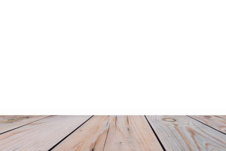 Wood table for display or montage products with blank white background.