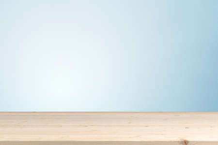 Empty wood table top on blue background, Template mock up for display of product